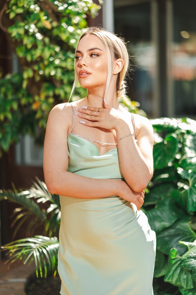 Abito in Satin con brretelle strass