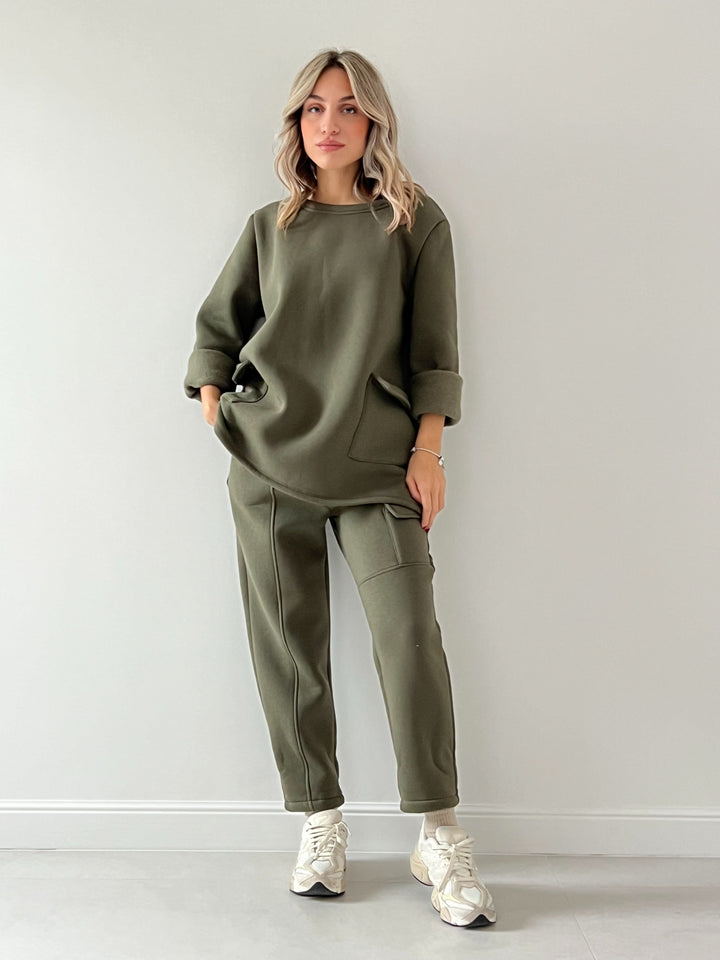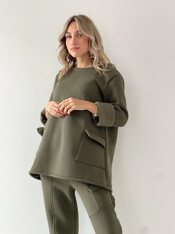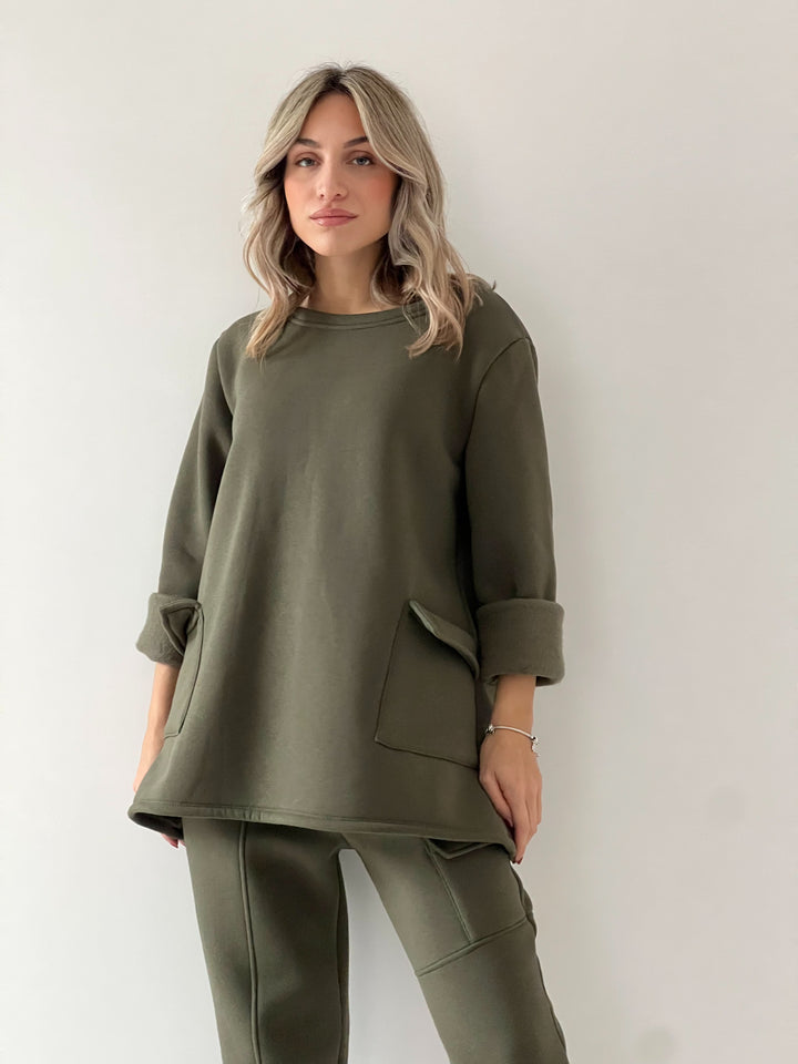 Pantalone con elastico in vita tasche sul davanti e tagli asimetrici