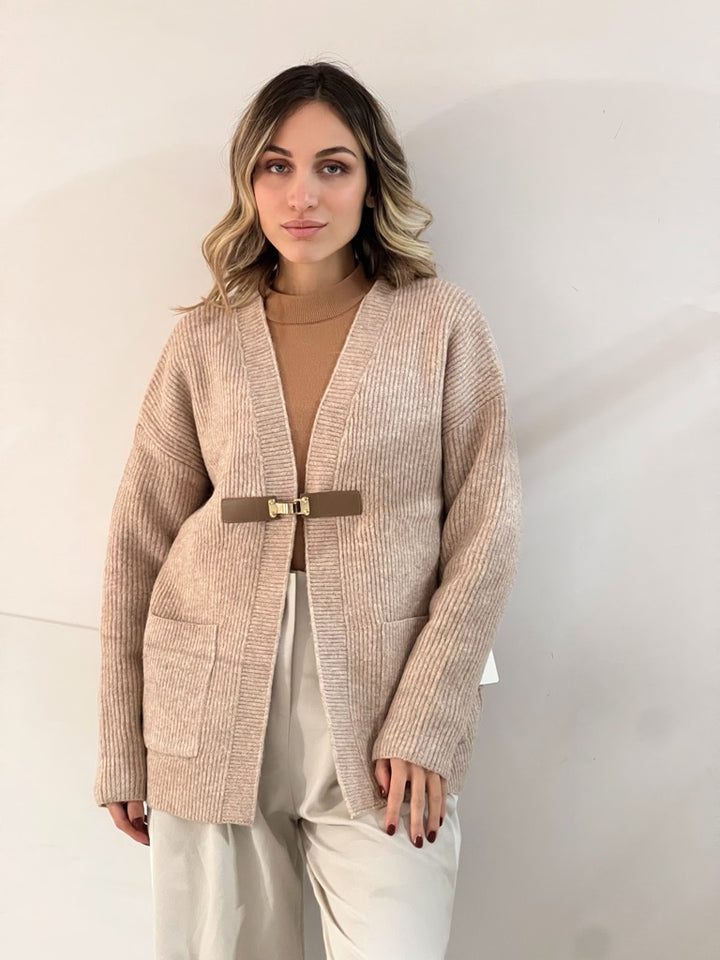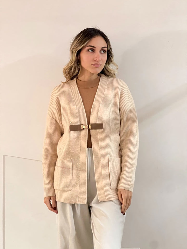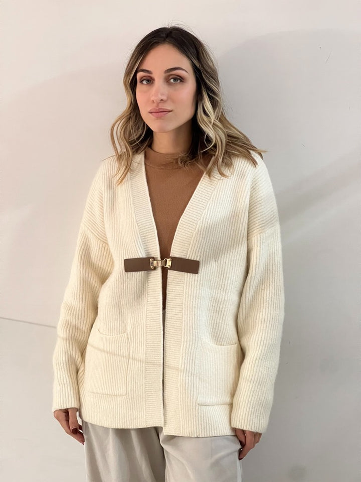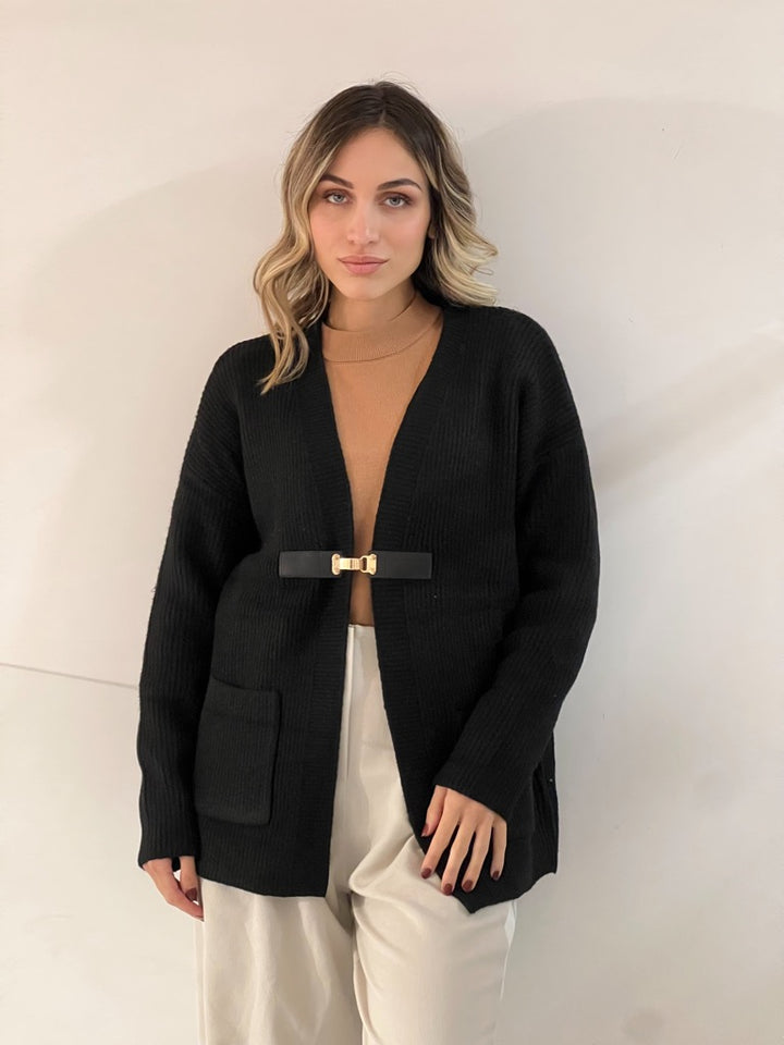 Cardigan in Maglia con chiusura applicazione sul davanti