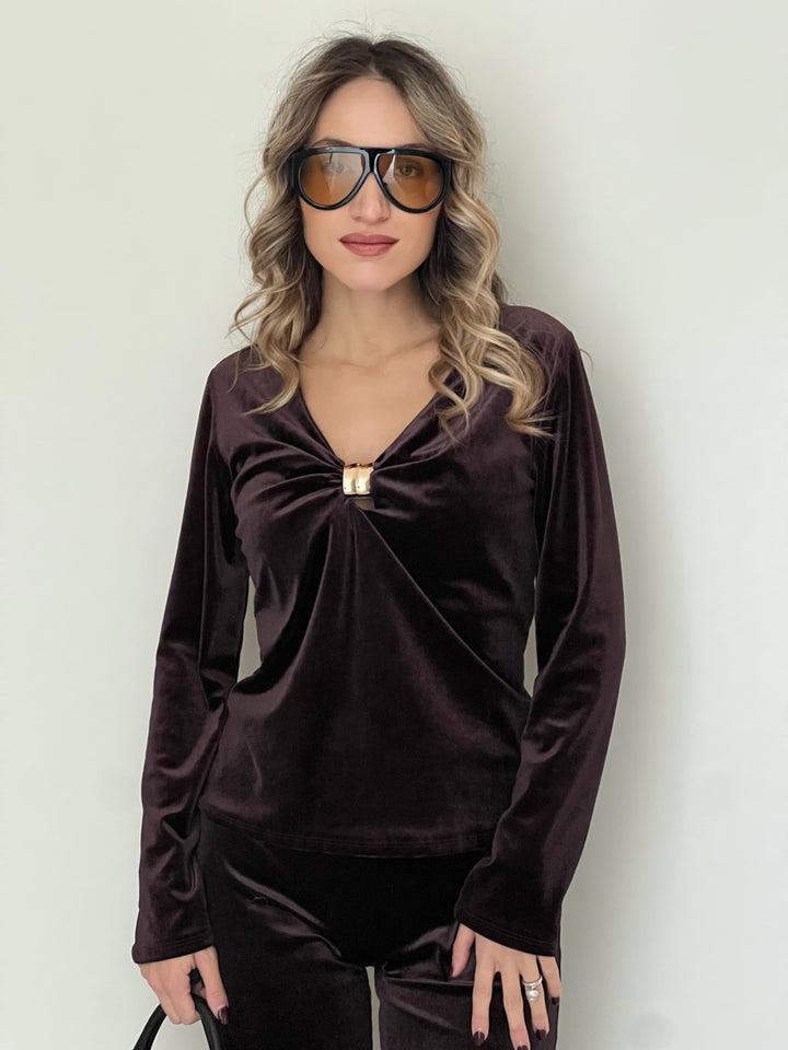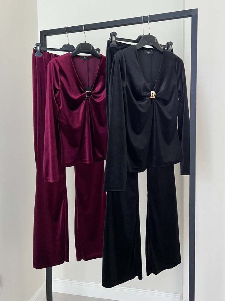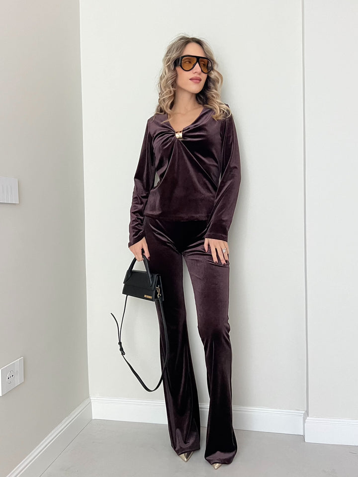 Maglia con scollo V e pantalone ampio a gamba dritta per un look sofisticato ma rilassato.