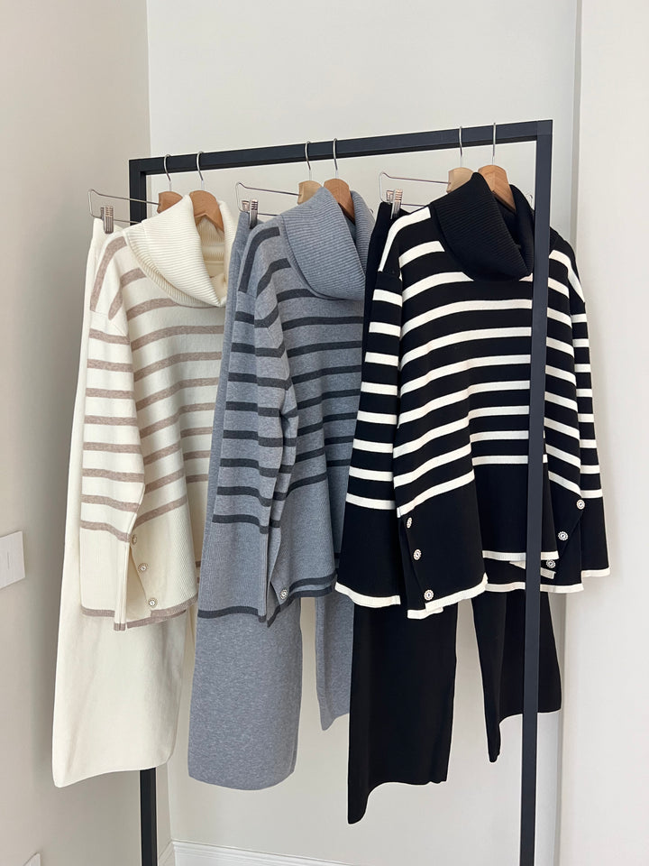 Eleganza e comfort si incontrano in questo completo in maglia dal taglio moderno.