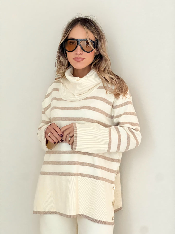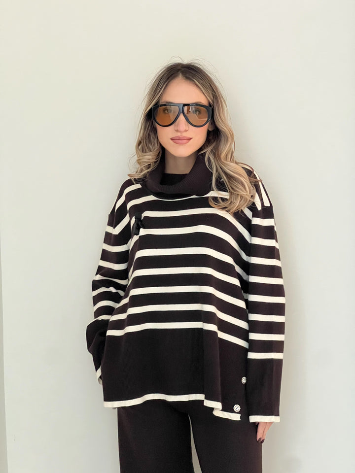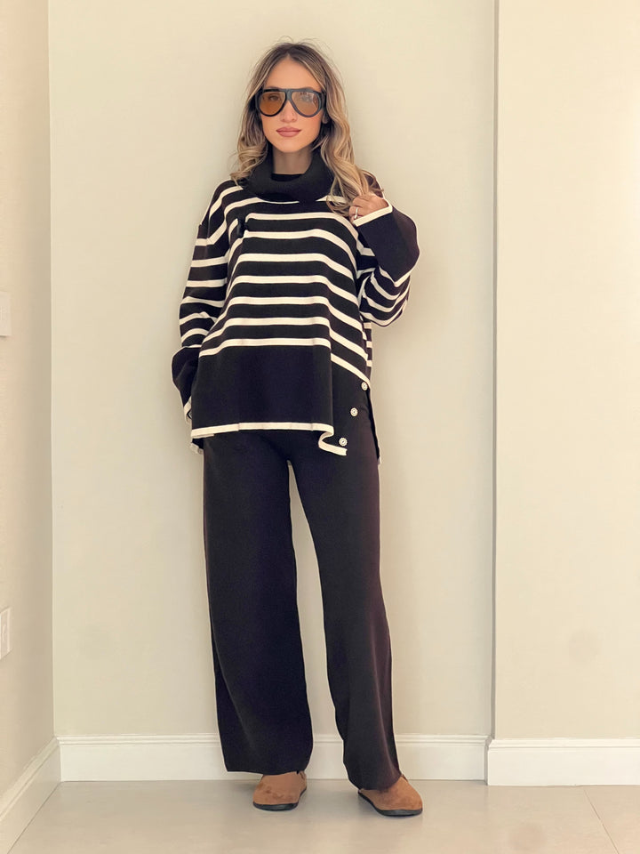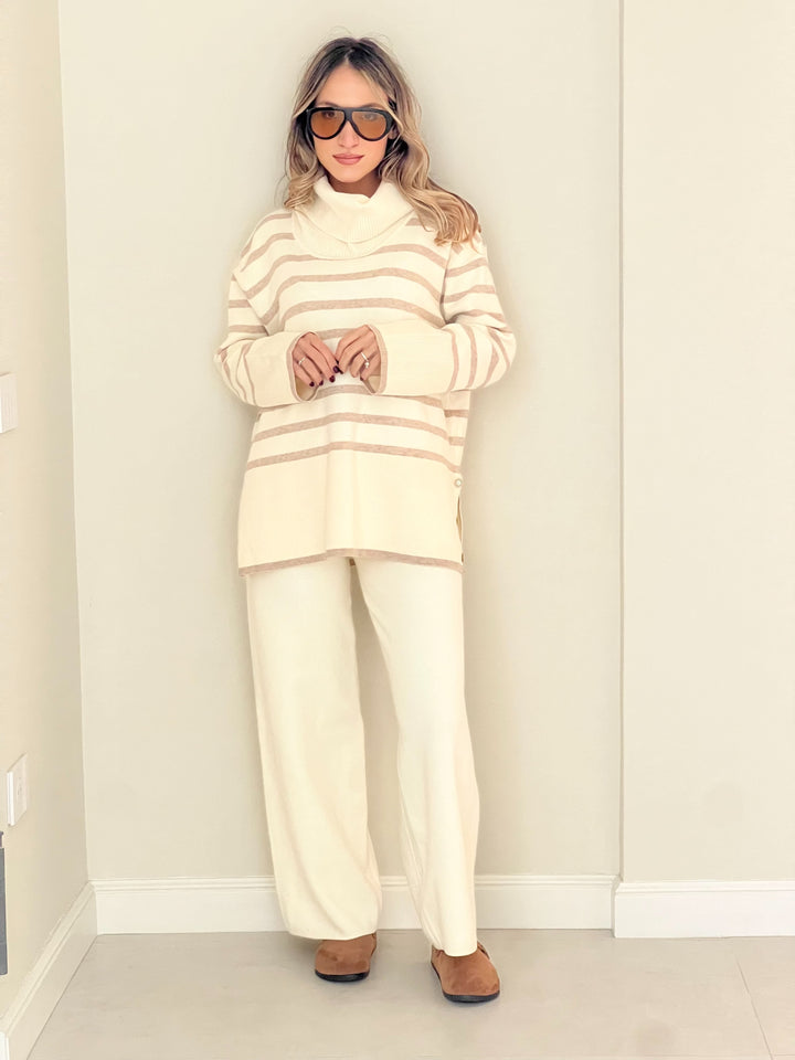 Maglione oversize e pantalone ampio a gamba dritta per un look sofisticato ma rilassato.