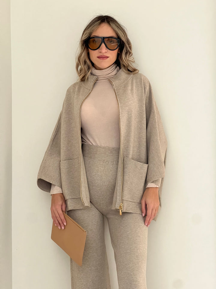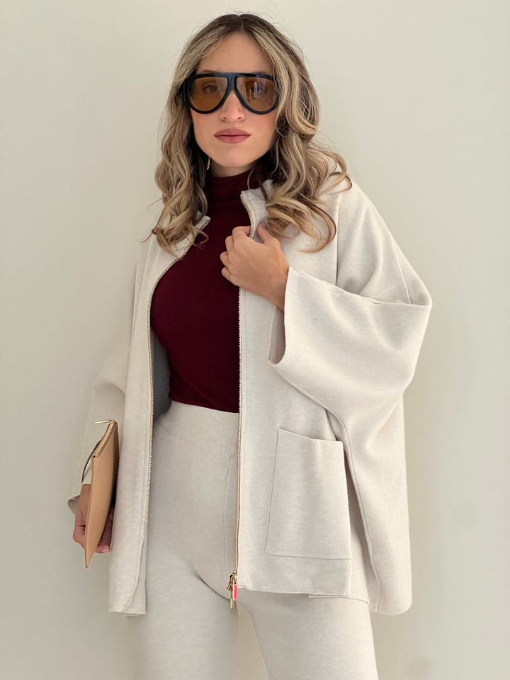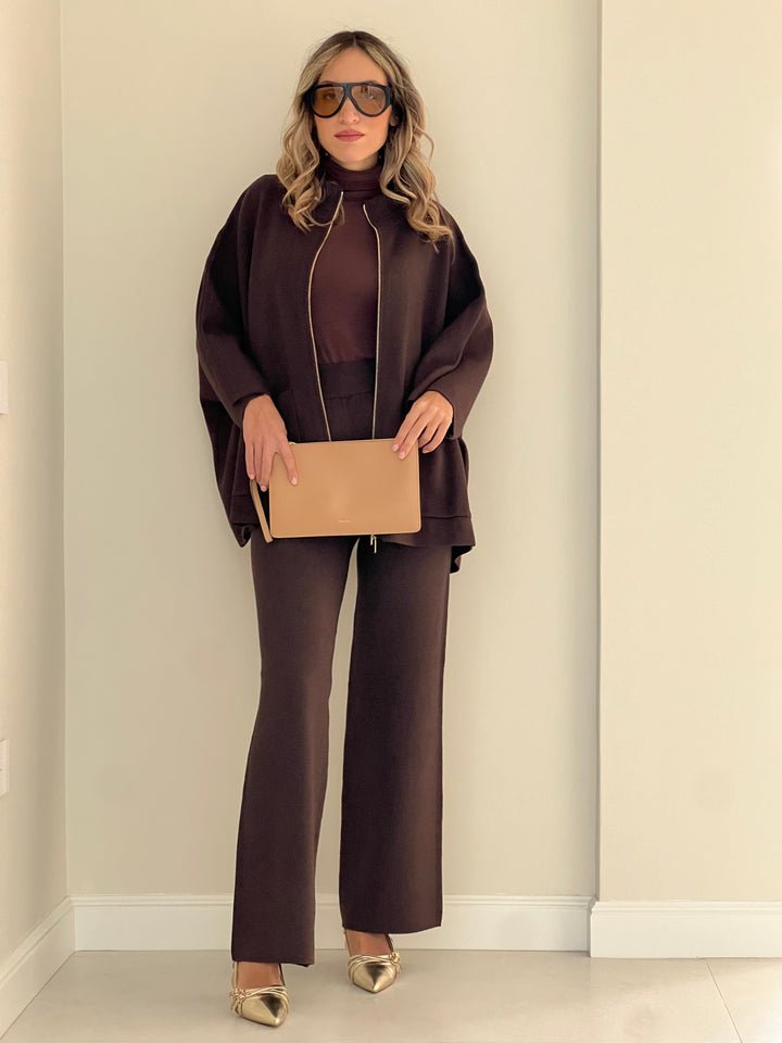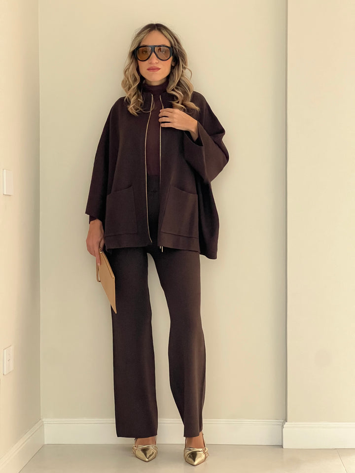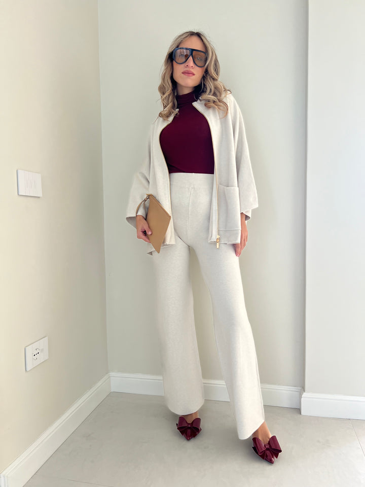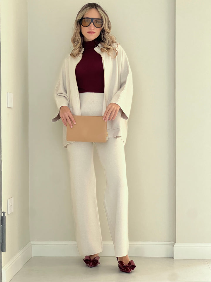Maglione oversize e pantalone ampio a gamba dritta per un look sofisticato ma rilassato.