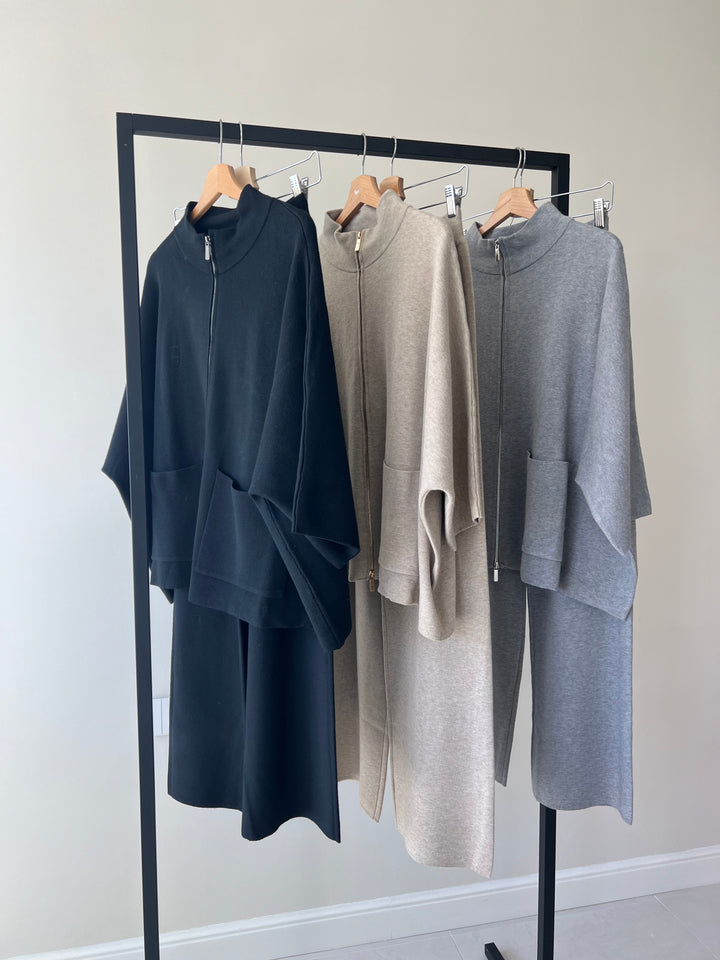 Eleganza e comfort si incontrano in questo completo in maglia dal taglio moderno.