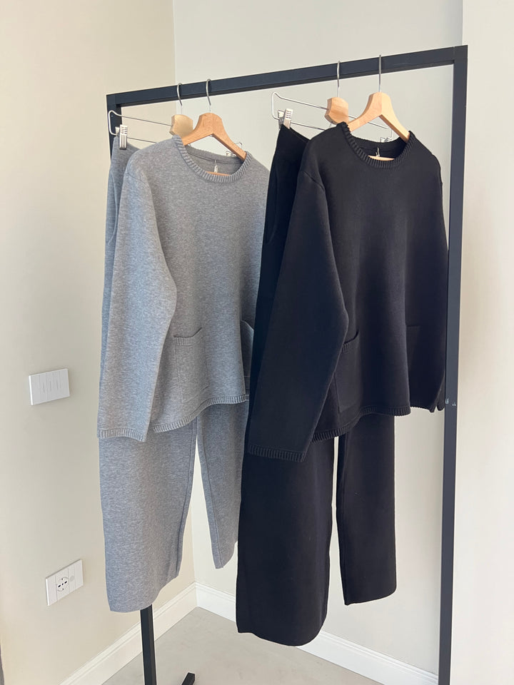 Eleganza e comfort si incontrano in questo completo in maglia dal taglio moderno.