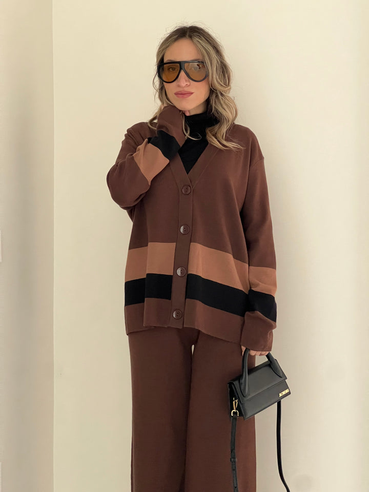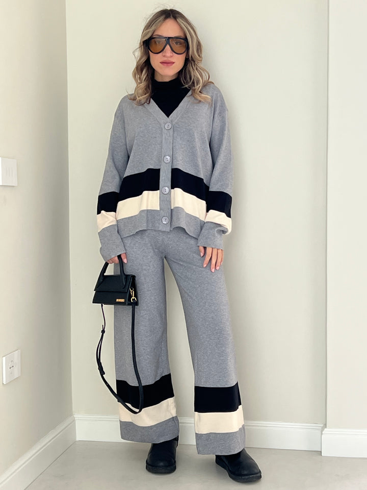 Eleganza e comfort si incontrano in questo completo in maglia dal taglio moderno.