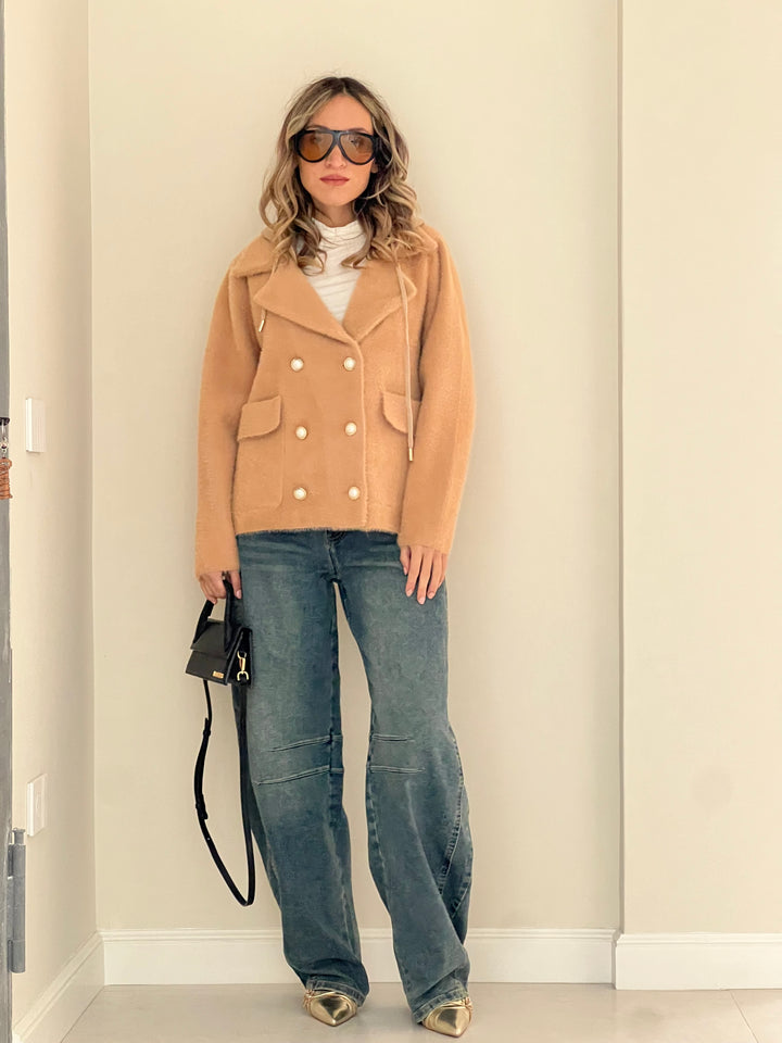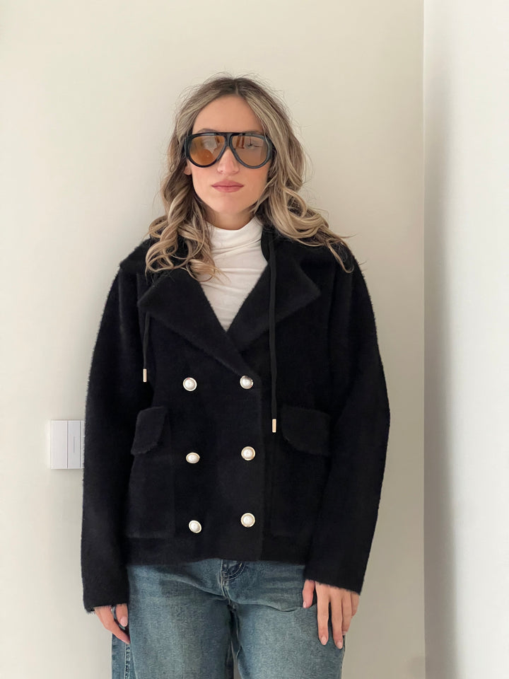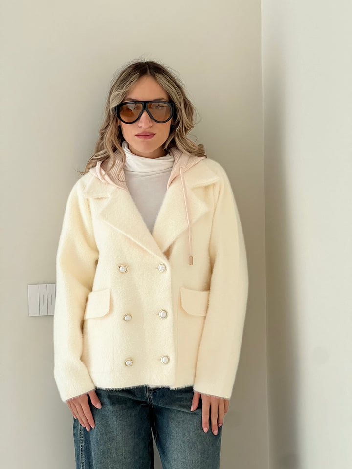 Giacca doppio petto in Maglia con cappuccio removibile