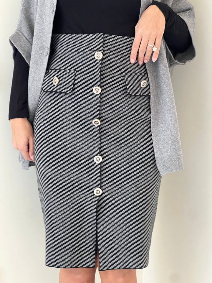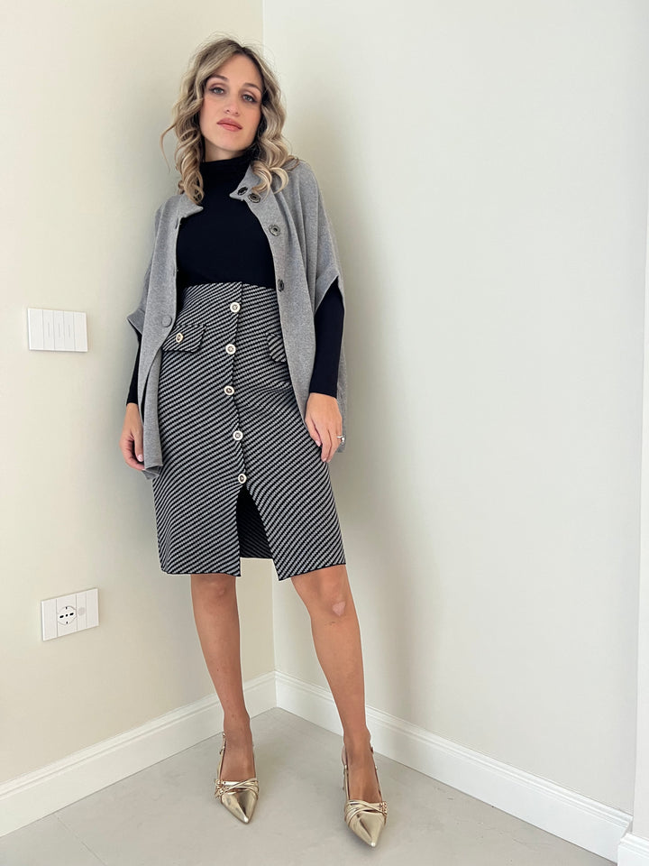 Gonna in maglia vita alta con bottoni sul davanti
