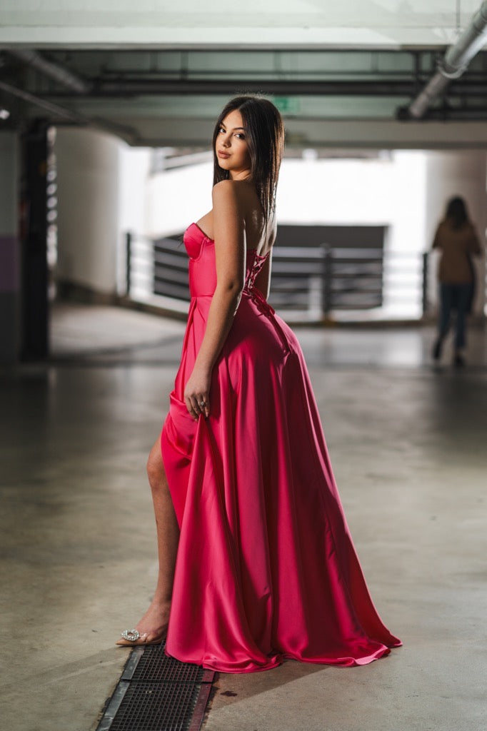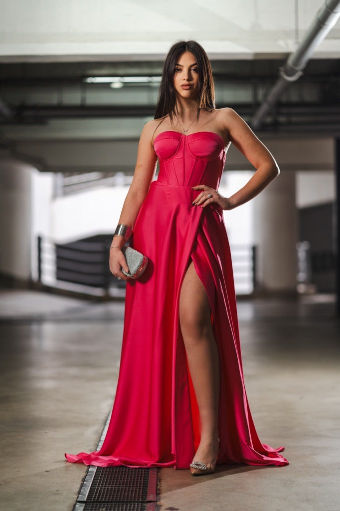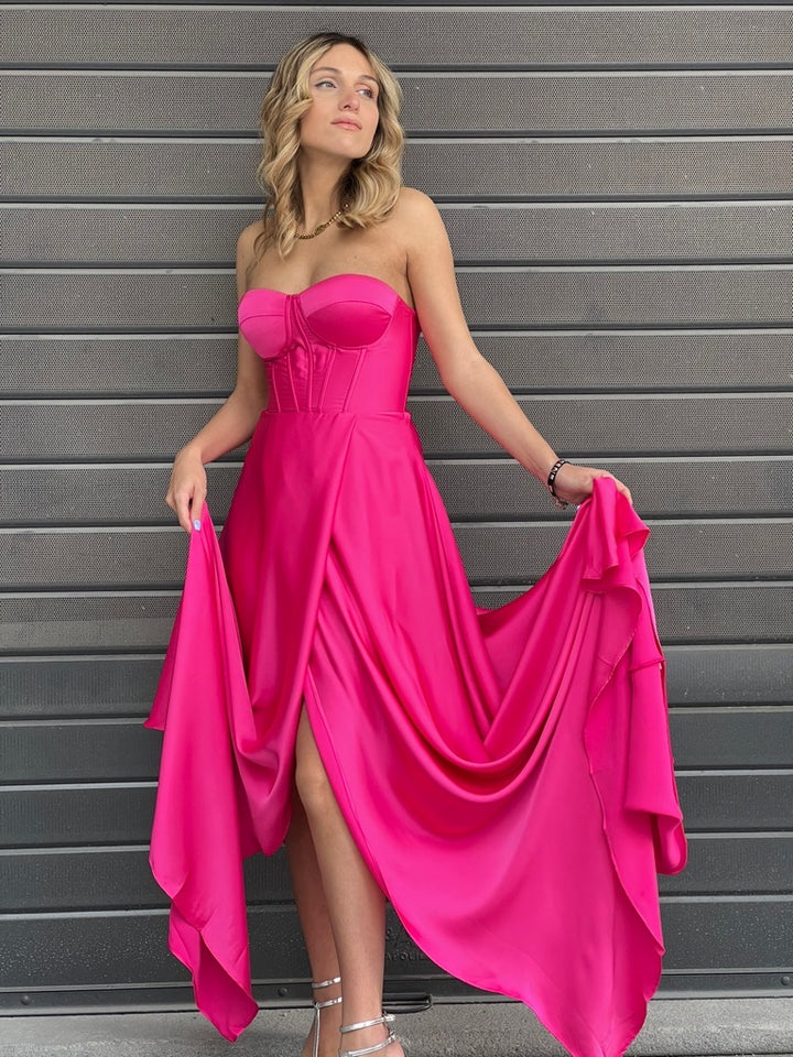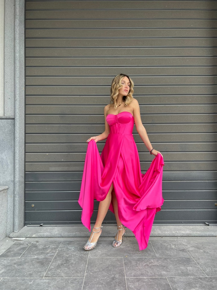 Abito cerimonia donna satin lungo con coppe e bretelle regolabili