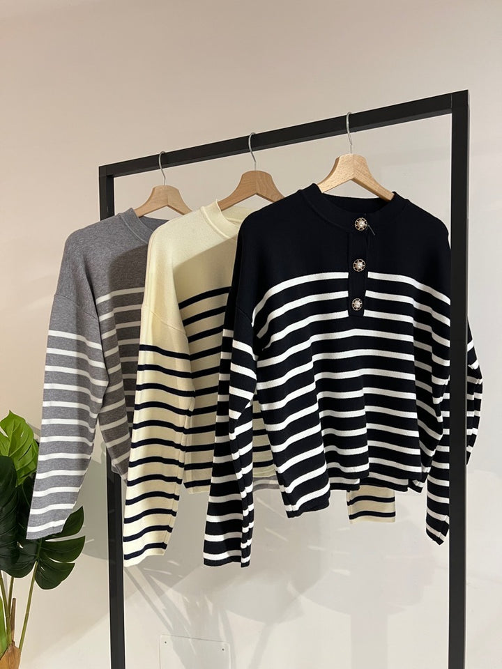 Maglione in maglia con mezzo collo e bottoni in madreperla