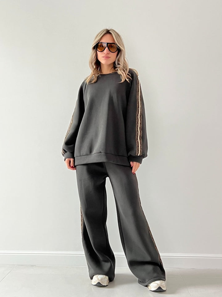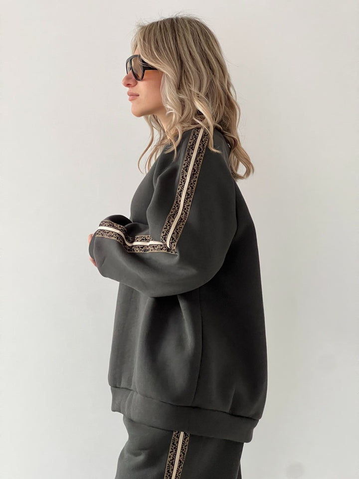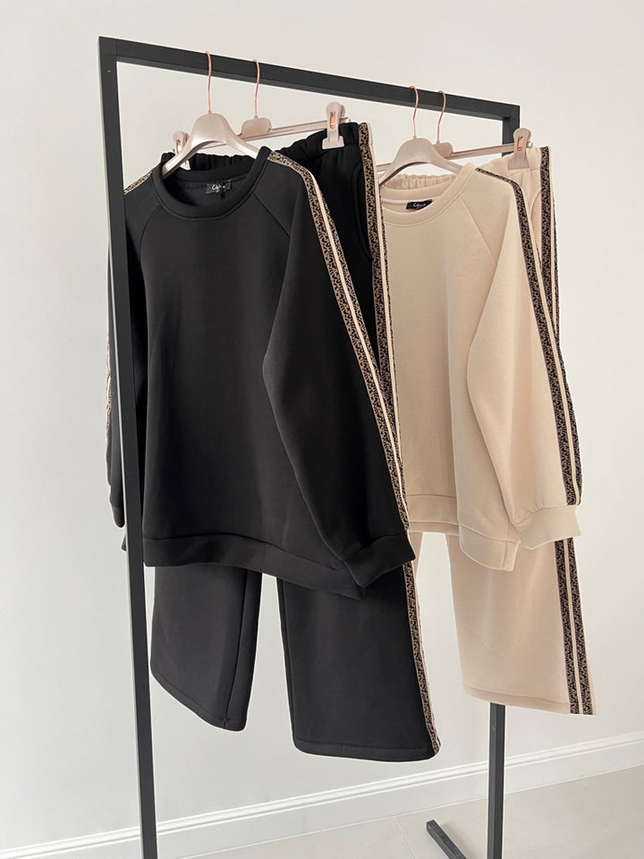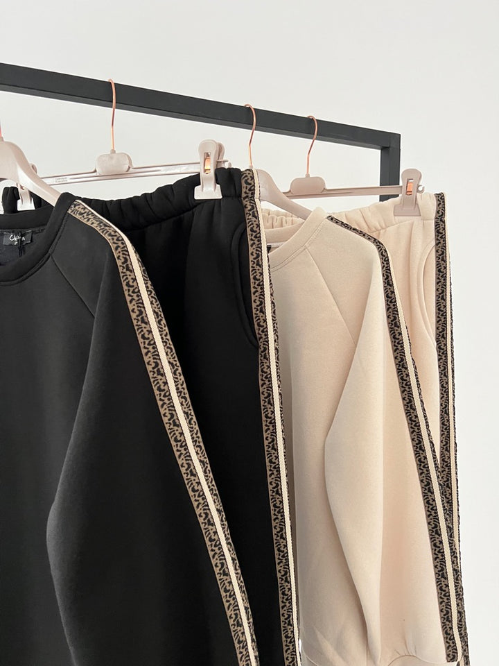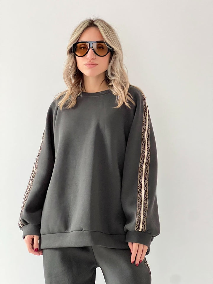 Felpa Super over con manica a sbuffo e bandina sul laterale pantalone con elastico in vita bandina laterale