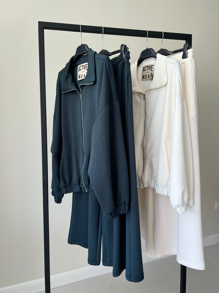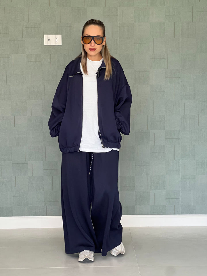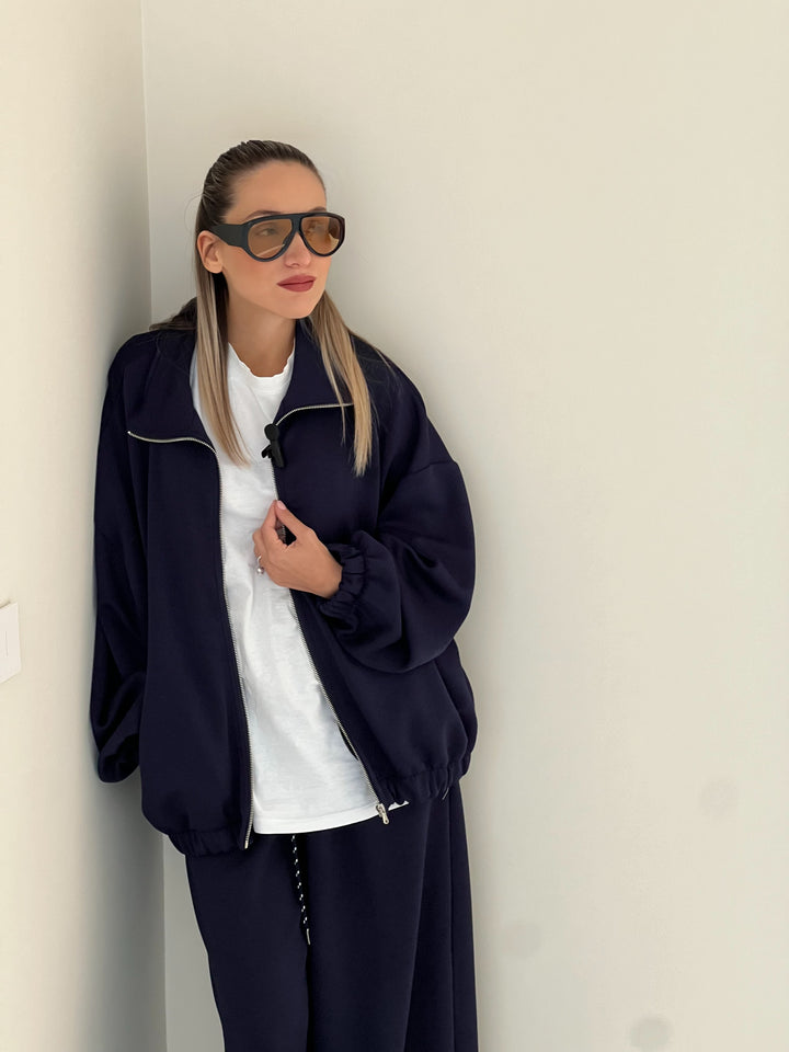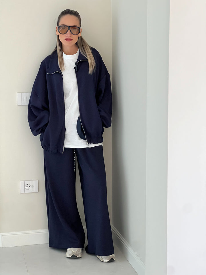 Comfort e stile minimal si incontrano in questa tuta dal taglio over. Realizzata in tessuto felpato morbido e caldo, presenta una felpa con zip e tasche laterali e un pantalone ampio con coulisse in vita facile da abbinare e perfetta per un look casual e sofisticato allo stesso tempo. Da indossare con sneakers per un outfit sporty-chic impeccabile.